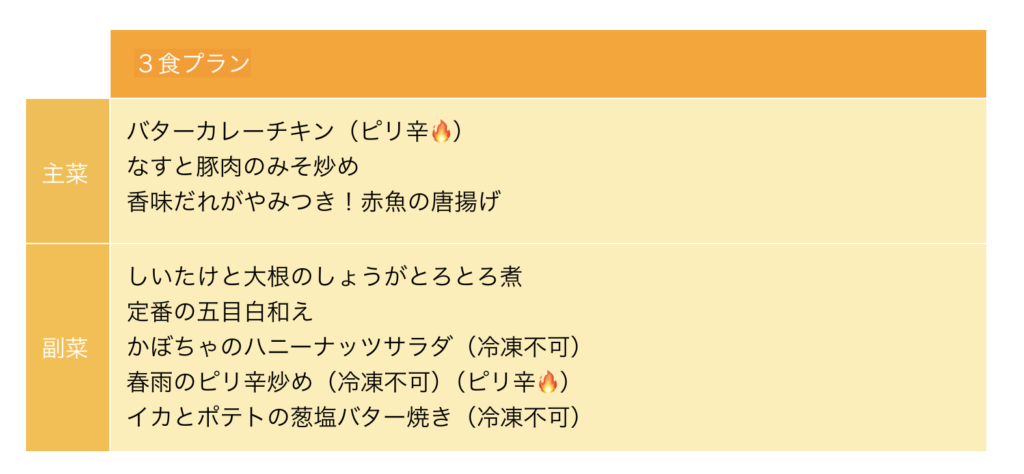 我が家は「週3食プラン(4人前3食)」を利用しています。