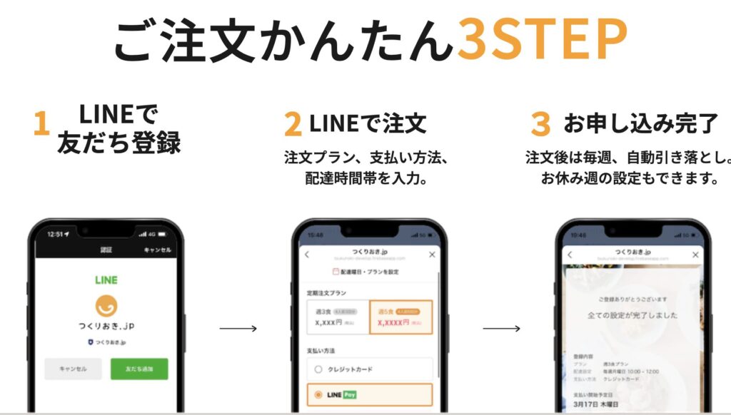 つくりおき.jpの注文や配達日の調整は、LINEで簡単に調整ができます。